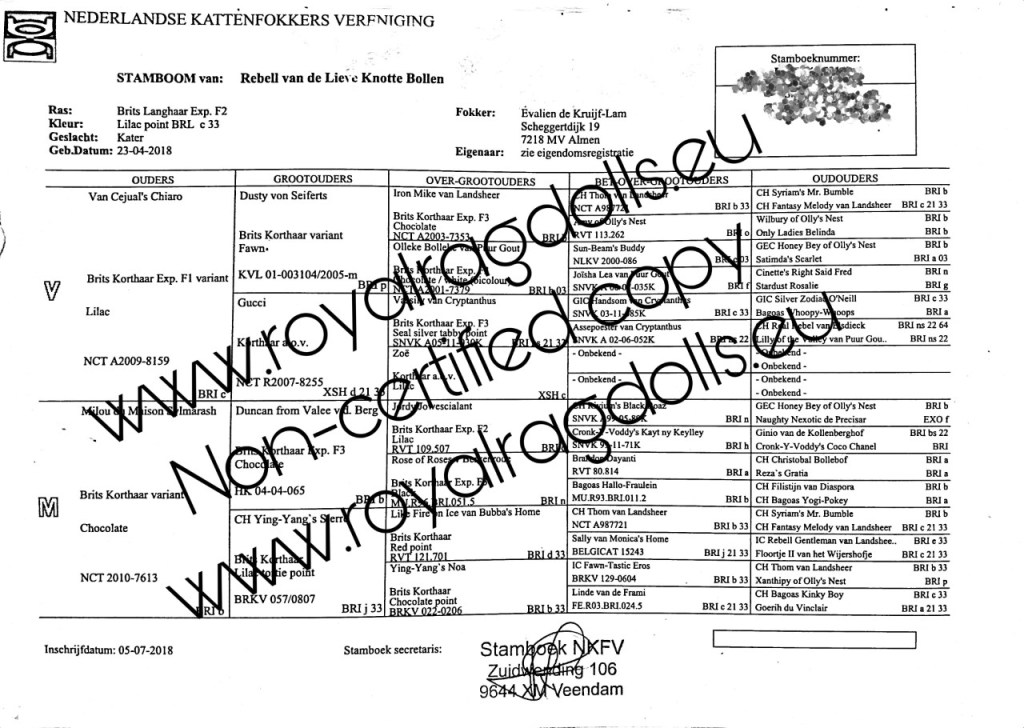 Om veiligheidsredenen is het stamboeknummer onherkenbaar gemaakt.